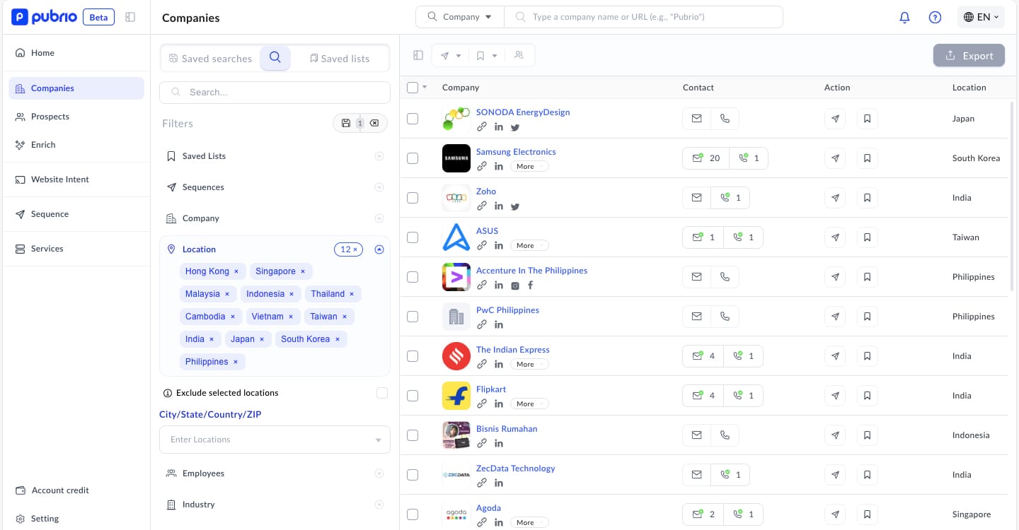 How Pubrio Helps: Pubrio's AI-driven platform lets you create detailed Ideal Customer Profiles (ICPs) and filter prospects across 50+ criteria, helping you quickly build laser-focused lists tailored for APAC’s diverse markets.