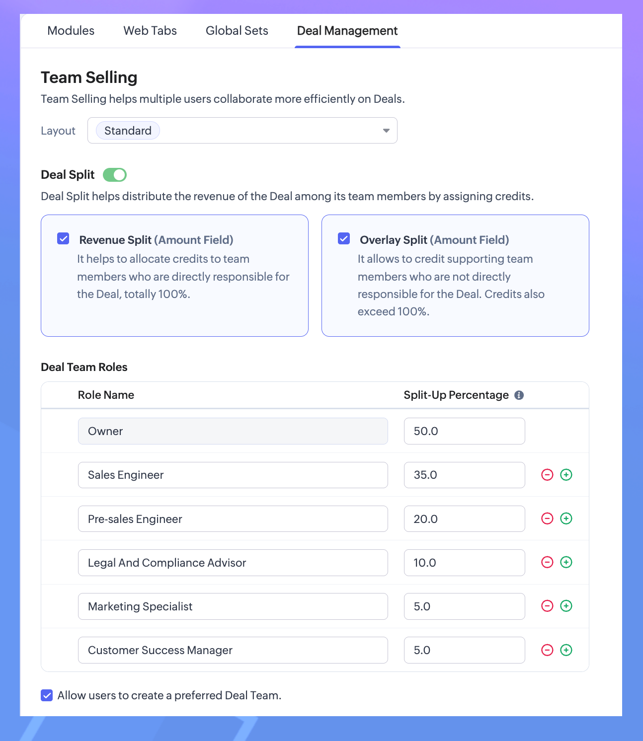 Sales teams can now allocate multiple stakeholders to deals, supporting: